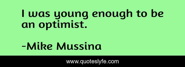 This page presents the quote "I was young enough to be an optimist.". Author of this quote is Mike Mussina. This quote is about maturation, optimism,.