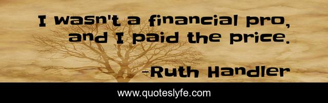 This page presents the quote "I wasn't a financial pro, and I paid the price.". Author of this quote is Ruth Handler. This quote is about price, financial, paid,.