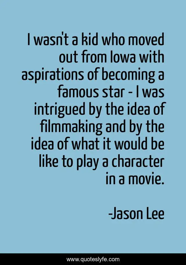 This page presents the quote "I wasn't a kid who moved out from Iowa with aspirations of becoming a famous star - I was intrigued by the idea of filmmaking and by the idea of what it would be like to play a character in a movie.". Author of this quote is Jason Lee. This quote is about play, character, filmmaking,.