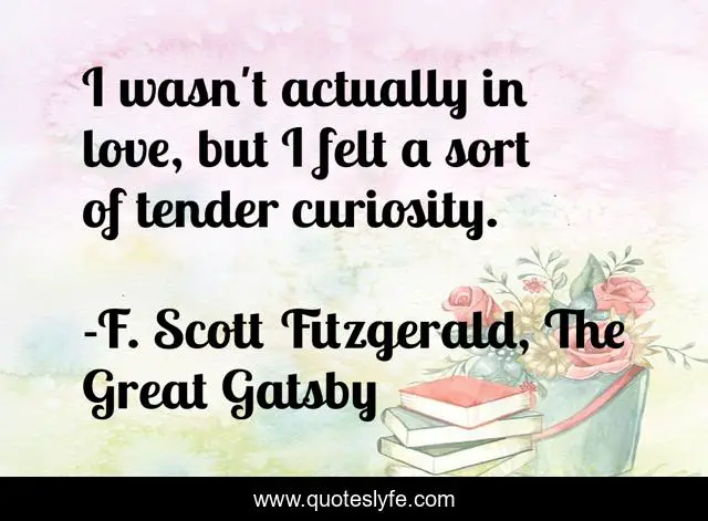 This page presents the quote "I wasn't actually in love, but I felt a sort of tender curiosity.". Author of this quote is F. Scott Fitzgerald, The Great Gatsby. This quote is about amity, love, affection,.
