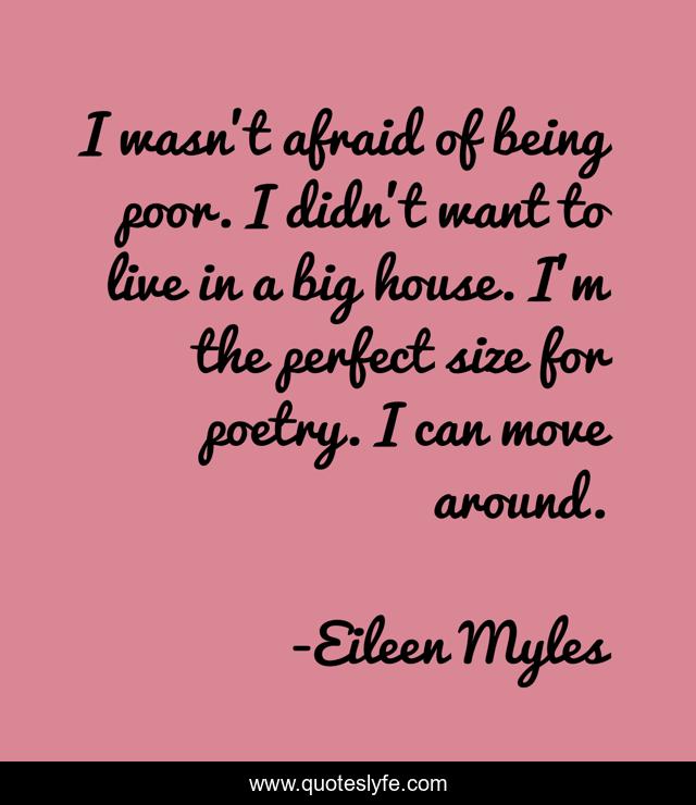 This page presents the quote "I wasn't afraid of being poor. I didn't want to live in a big house. I'm the perfect size for poetry. I can move around.". Author of this quote is Eileen Myles. This quote is about perfect, live,.