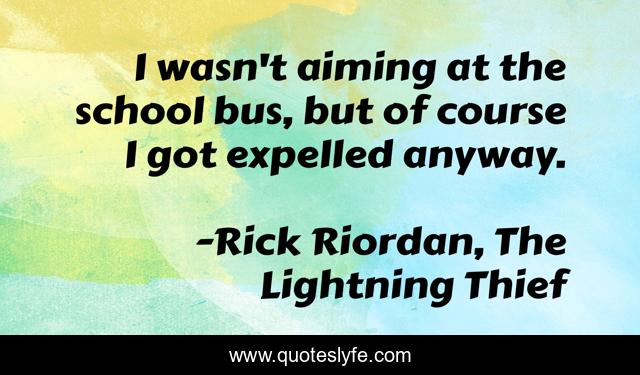 This page presents the quote "I wasn't aiming at the school bus, but of course I got expelled anyway.". Author of this quote is Rick Riordan, The Lightning Thief. .