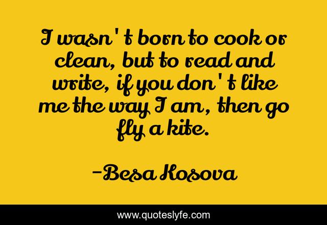 This page presents the quote "I wasn't born to cook or clean, but to read and write, if you don't like me the way I am, then go fly a kite.". Author of this quote is Besa Kosova. This quote is about write, writers, writing,.