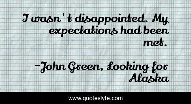 "John Green, Looking for Alaska Quotes." Quoteslyfe.com, 2025. Fri. 05 Dec. 2025. <https://www.quoteslyfe.com/quote/I-wasn-t-disappointed-My-expectations-had-228307>.