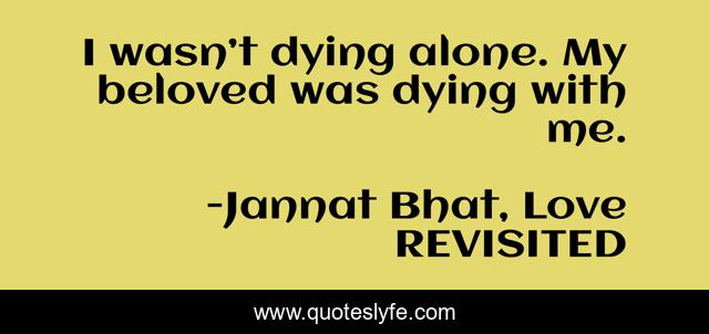 "Jannat Bhat, Love REVISITED Quotes." Quoteslyfe.com, 2025. Sat. 06 Dec. 2025. <https://www.quoteslyfe.com/quote/I-wasn-t-dying-alone-My-beloved-159709>.
