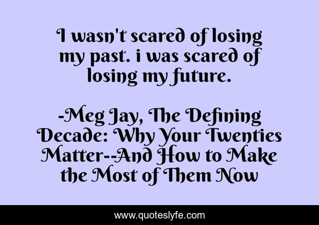 This page presents the quote "I wasn't scared of losing my past. i was scared of losing my future.". Author of this quote is Meg Jay, The Defining Decade: Why Your Twenties Matter--And How to Make the Most of Them Now. .
