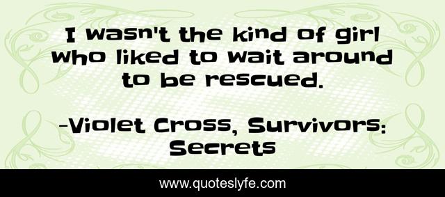 This page presents the quote "I wasn't the kind of girl who liked to wait around to be rescued.". Author of this quote is Violet Cross, Survivors: Secrets. This quote is about secrets, survivors, lacey,.