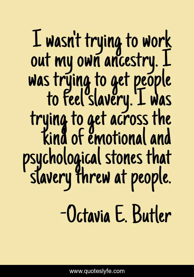 "Octavia E. Butler Quotes." Quoteslyfe.com, 2025. Fri. 05 Dec. 2025. <https://www.quoteslyfe.com/quote/I-wasn-t-trying-to-work-out-228280>.