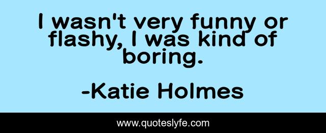 This page presents the quote "I wasn't very funny or flashy, I was kind of boring.". Author of this quote is Katie Holmes. This quote is about very, boring, kind,.