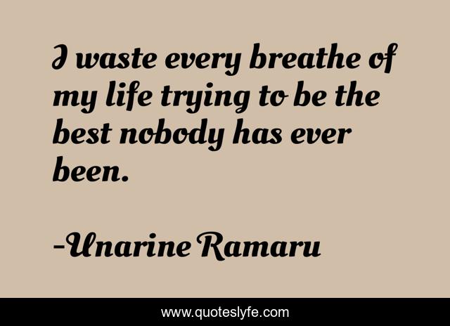 This page presents the quote "I waste every breathe of my life trying to be the best nobody has ever been.". Author of this quote is Unarine Ramaru. This quote is about different, life, extraordinary, every-breathe, decisions, successful-living,.