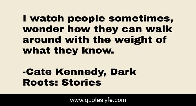 This page presents the quote "I watch people sometimes, wonder how they can walk around with the weight of what they know.". Author of this quote is Cate Kennedy, Dark Roots: Stories. This quote is about short-stories, knowledge,.