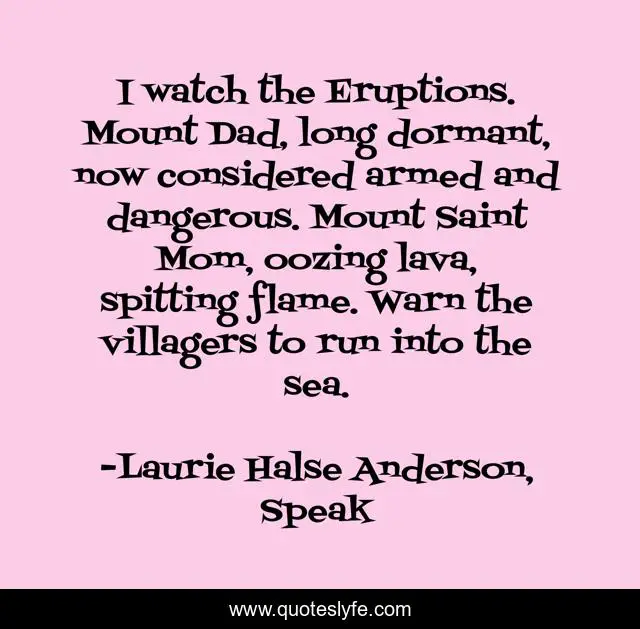 "Laurie Halse Anderson, Speak Quotes." Quoteslyfe.com, 2025. Sat. 06 Dec. 2025. <https://www.quoteslyfe.com/quote/I-watch-the-Eruptions-Mount-Dad-long-40500>.