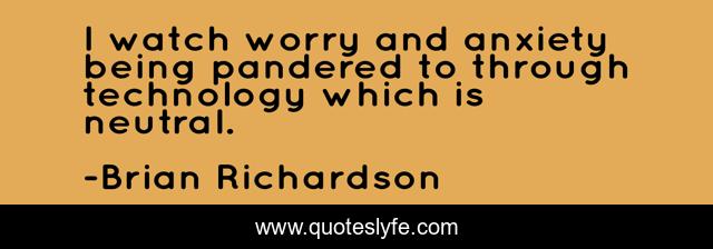 This page presents the quote "I watch worry and anxiety being pandered to through technology which is neutral.". Author of this quote is Brian Richardson. This quote is about anxiety, technology, worry,.