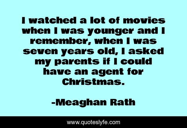 This page presents the quote "I watched a lot of movies when I was younger and I remember, when I was seven years old, I asked my parents if I could have an agent for Christmas.". Author of this quote is Meaghan Rath. This quote is about movies, parents, remember,.