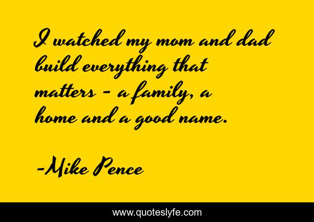This page presents the quote "I watched my mom and dad build everything that matters - a family, a home and a good name.". Author of this quote is Mike Pence. This quote is about home, good, family,.