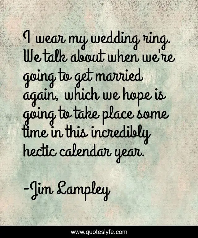 "Jim Lampley Quotes." Quoteslyfe.com, 2025. Sat. 06 Dec. 2025. <https://www.quoteslyfe.com/quote/I-wear-my-wedding-ring-We-talk-283019>.