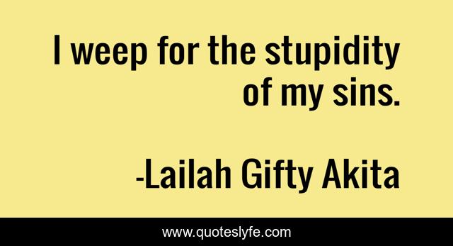 This page presents the quote "I weep for the stupidity of my sins.". Author of this quote is Lailah Gifty Akita. This quote is about lailah-gifty-akita-affirmations, stupidity, inspirational, enthusiasm, weep, sin,.