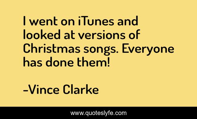 This page presents the quote "I went on iTunes and looked at versions of Christmas songs. Everyone has done them!". Author of this quote is Vince Clarke. This quote is about everyone, done, versions,.