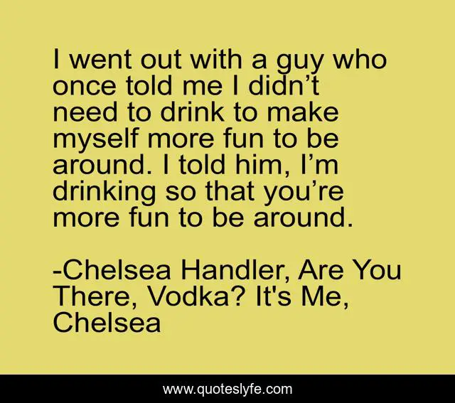 This page presents the quote "I went out with a guy who once told me I didn’t need to drink to make myself more fun to be around. I told him, I’m drinking so that you’re more fun to be around.". Author of this quote is Chelsea Handler, Are You There, Vodka? It's Me, Chelsea. .