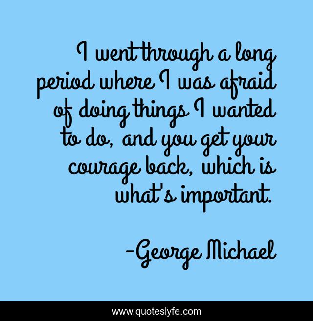 This page presents the quote "I went through a long period where I was afraid of doing things I wanted to do, and you get your courage back, which is what's important.". Author of this quote is George Michael. .