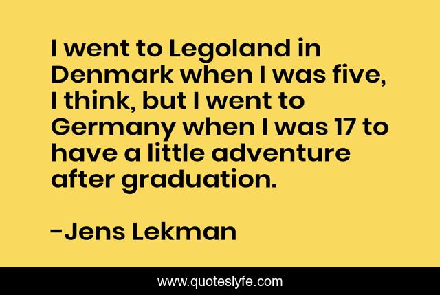 This page presents the quote "I went to Legoland in Denmark when I was five, I think, but I went to Germany when I was 17 to have a little adventure after graduation.". Author of this quote is Jens Lekman. This quote is about little, adventure, think,.