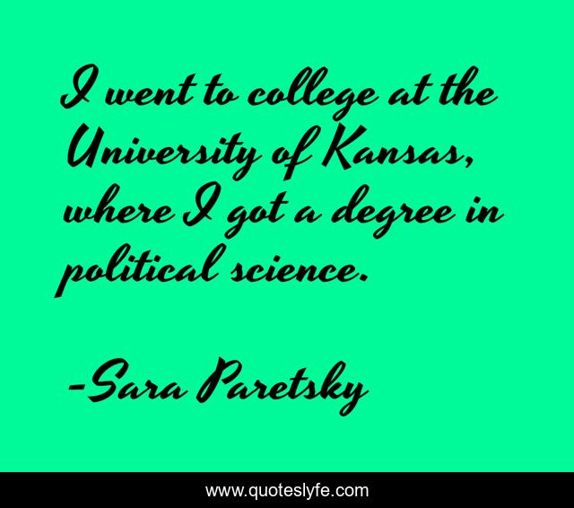 This page presents the quote "I went to college at the University of Kansas, where I got a degree in political science.". Author of this quote is Sara Paretsky. This quote is about science, college, political,.