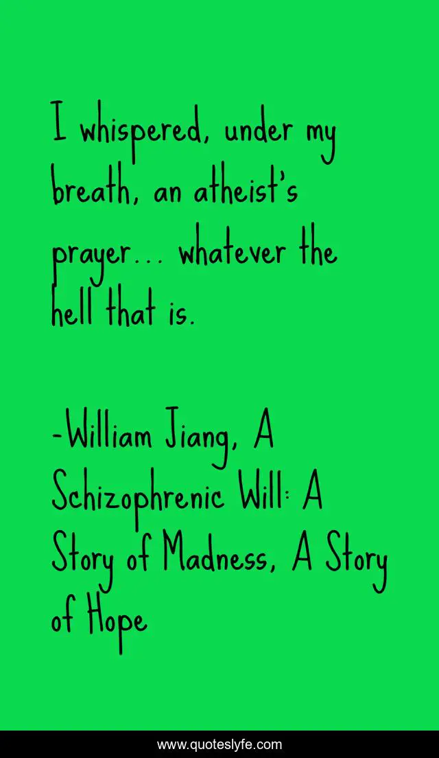 "William Jiang, A Schizophrenic Will: A Story of Madness, A Story of Hope Quotes." Quoteslyfe.com, 2025. Sat. 06 Dec. 2025. <https://www.quoteslyfe.com/quote/I-whispered-under-my-breath-an-atheist-175995>.