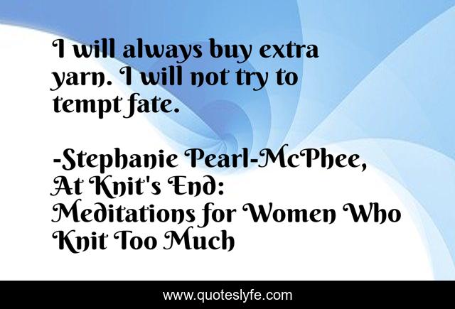 "Stephanie Pearl-McPhee, At Knit's End: Meditations for Women Who Knit Too Much Quotes." Quoteslyfe.com, 2025. Mon. 08 Dec. 2025. <https://www.quoteslyfe.com/quote/I-will-always-buy-extra-yarn-I-153568>.