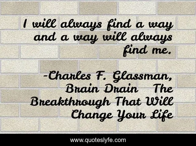 "Charles F. Glassman, Brain Drain The Breakthrough That Will Change Your Life Quotes." Quoteslyfe.com, 2025. Fri. 05 Dec. 2025. <https://www.quoteslyfe.com/quote/I-will-always-find-a-way-and-94588>.