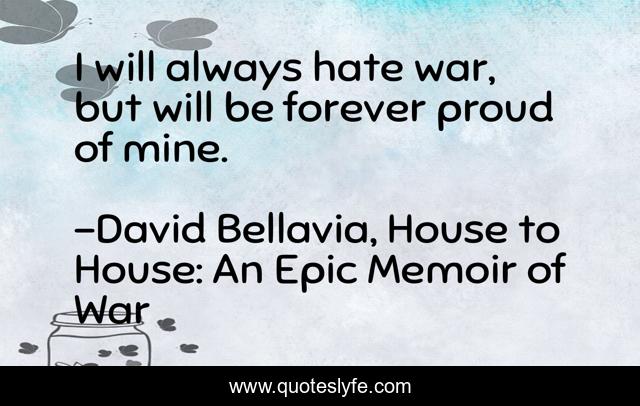"David Bellavia, House to House: An Epic Memoir of War Quotes." Quoteslyfe.com, 2025. Fri. 05 Dec. 2025. <https://www.quoteslyfe.com/quote/I-will-always-hate-war-but-will-163605>.