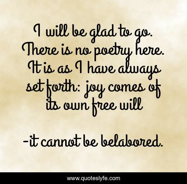 I will be glad to go. There is no poetry here. It is as I have always set forth: joy comes of its own free will