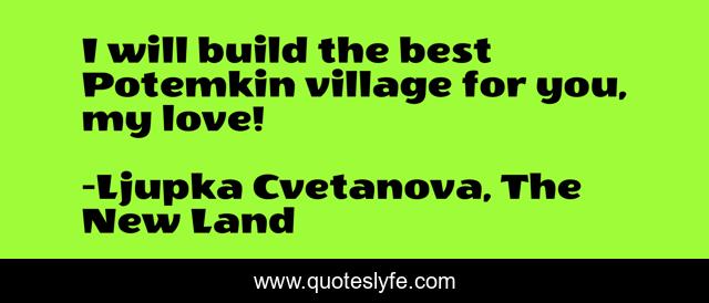 This page presents the quote "I will build the best Potemkin village for you, my love!". Author of this quote is Ljupka Cvetanova, The New Land. This quote is about aphorism, love, quote, false-love, potemkin, village, affection,.