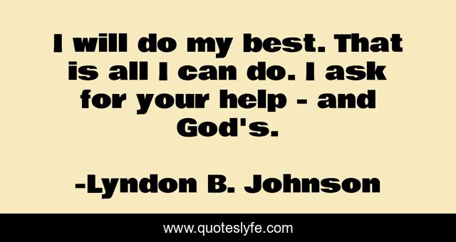 This page presents the quote "I will do my best. That is all I can do. I ask for your help - and God's.". Author of this quote is Lyndon B. Johnson. This quote is about god, help, i can,.