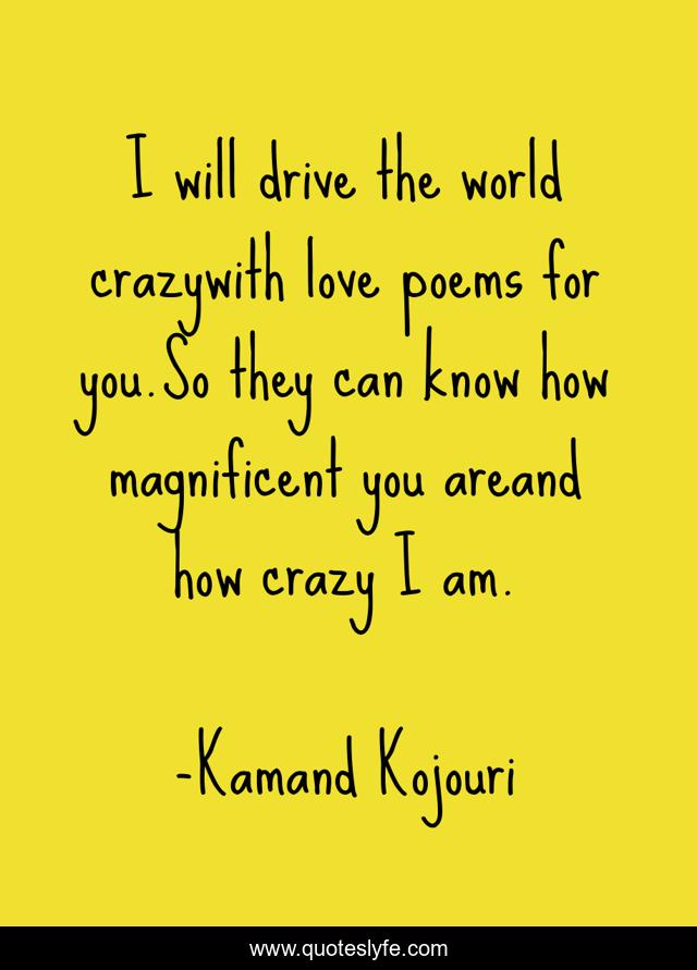 "Kamand Kojouri Quotes." Quoteslyfe.com, 2025. Tue. 09 Dec. 2025. <https://www.quoteslyfe.com/quote/I-will-drive-the-world-crazywith-love-49355>.