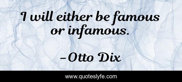 This page presents the quote "I will either be famous or infamous.". Author of this quote is Otto Dix. This quote is about either, infamous,.