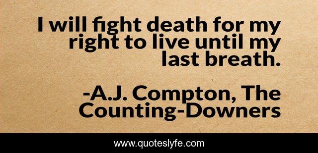 This page presents the quote "I will fight death for my right to live until my last breath.". Author of this quote is A.J. Compton, The Counting-Downers. This quote is about life, death, fighting-spirit,.