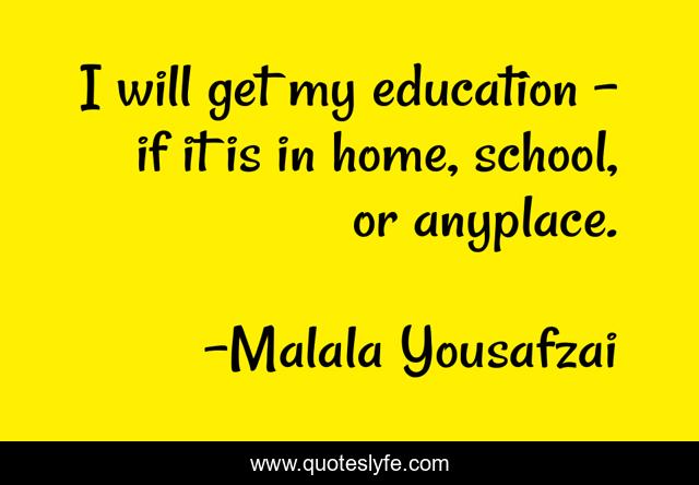 This page presents the quote "I will get my education - if it is in home, school, or anyplace.". Author of this quote is Malala Yousafzai. This quote is about home, school,.