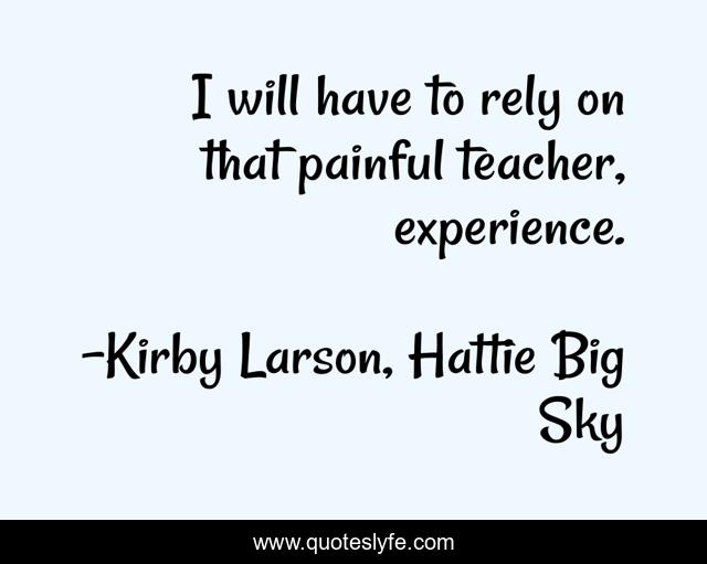 This page presents the quote "I will have to rely on that painful teacher, experience.". Author of this quote is Kirby Larson, Hattie Big Sky. This quote is about teaching, experience,.