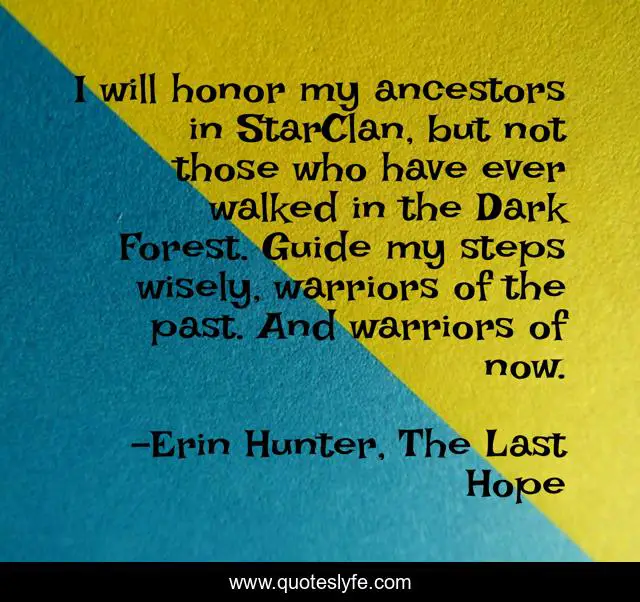 "Erin Hunter, The Last Hope Quotes." Quoteslyfe.com, 2025. Fri. 05 Dec. 2025. <https://www.quoteslyfe.com/quote/I-will-honor-my-ancestors-in-StarClan-225054>.