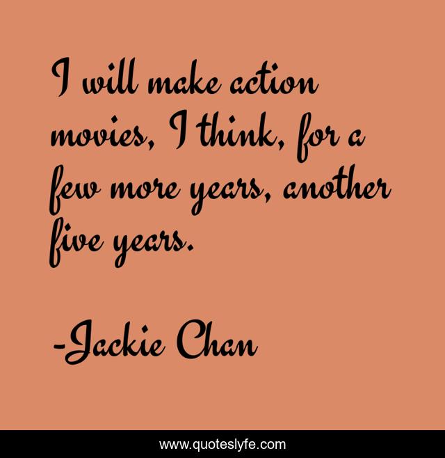 This page presents the quote "I will make action movies, I think, for a few more years, another five years.". Author of this quote is Jackie Chan. This quote is about action, think, years,.