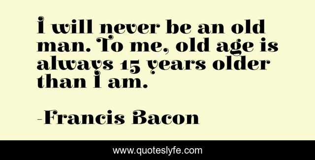 "Francis Bacon Quotes." Quoteslyfe.com, 2025. Mon. 08 Dec. 2025. <https://www.quoteslyfe.com/quote/I-will-never-be-an-old-man-296557>.