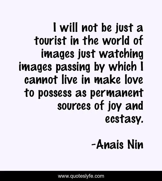 "Anais Nin Quotes." Quoteslyfe.com, 2025. Sat. 06 Dec. 2025. <https://www.quoteslyfe.com/quote/I-will-not-be-just-a-tourist-267242>.