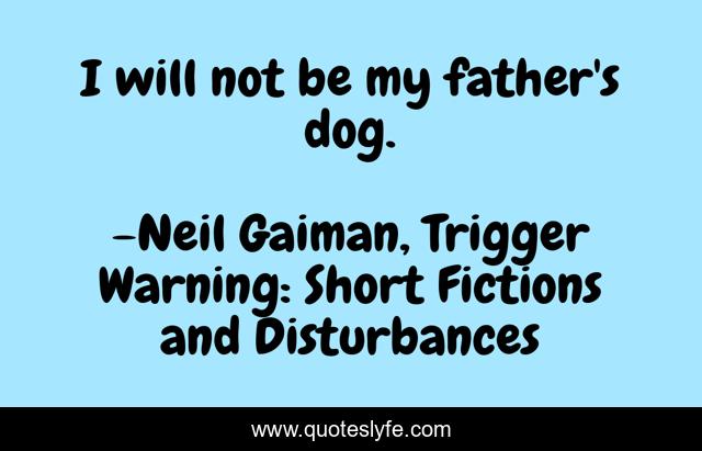 This page presents the quote "I will not be my father's dog.". Author of this quote is Neil Gaiman, Trigger Warning: Short Fictions and Disturbances. This quote is about allfather, baldur, father, shadow, odin, dogs,.