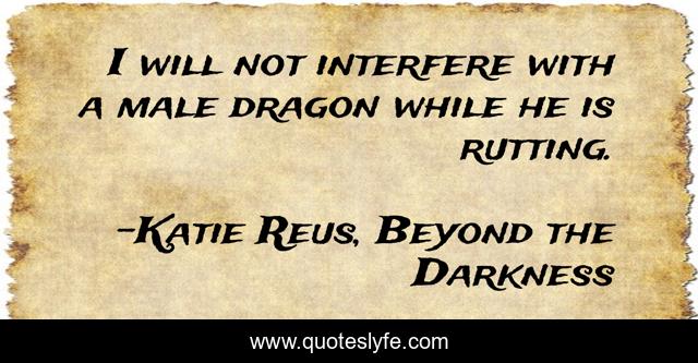 This page presents the quote "I will not interfere with a male dragon while he is rutting.". Author of this quote is Katie Reus, Beyond the Darkness. This quote is about paranormal-romance, demons, dragons,.