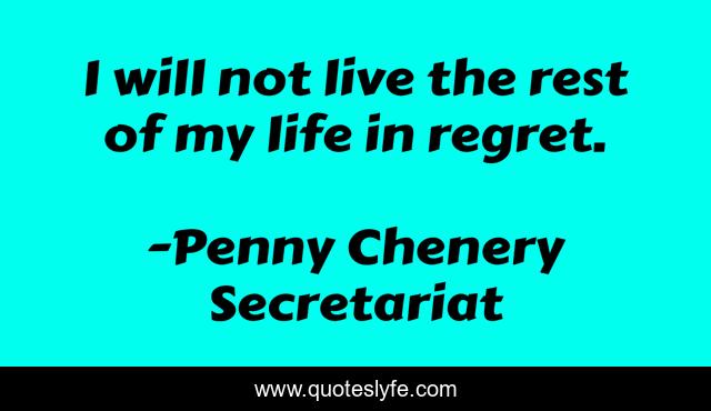 This page presents the quote "I will not live the rest of my life in regret.". Author of this quote is Penny Chenery Secretariat. This quote is about strength-of-character, life, determination, regrets,.
