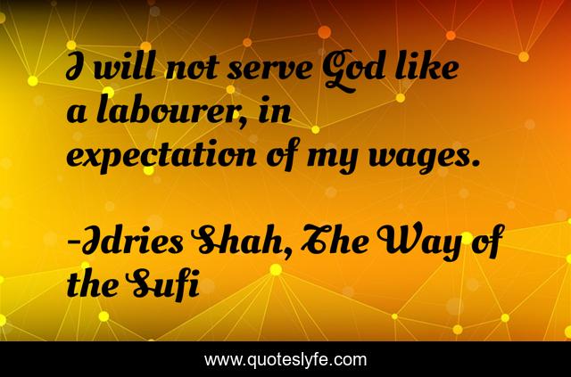 This page presents the quote "I will not serve God like a labourer, in expectation of my wages.". Author of this quote is Idries Shah, The Way of the Sufi. This quote is about sufism, god, wisdom, rabia, religion, sufis,.
