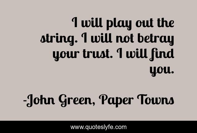 This page presents the quote "I will play out the string. I will not betray your trust. I will find you.". Author of this quote is John Green, Paper Towns. .