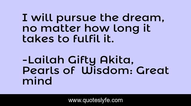 "Lailah Gifty Akita, Pearls of Wisdom: Great mind Quotes." Quoteslyfe.com, 2025. Tue. 09 Dec. 2025. <https://www.quoteslyfe.com/quote/I-will-pursue-the-dream-no-matter-92823>.