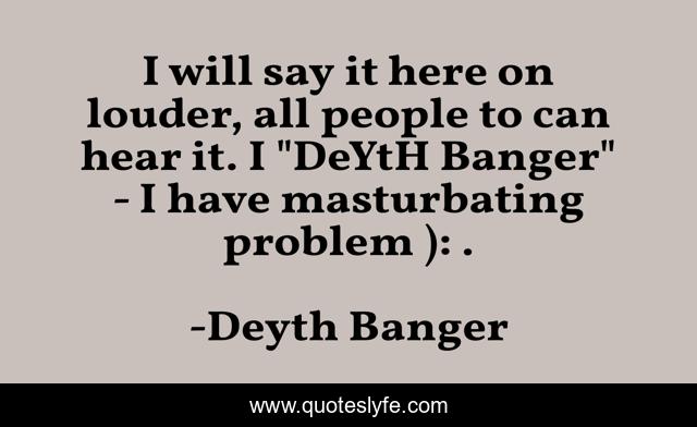 This page presents the quote "I will say it here on louder, all people to can hear it. I "DeYtH Banger" - I have masturbating problem ): .". Author of this quote is Deyth Banger. This quote is about hear-it, problem, louder, loud, masturbating,.