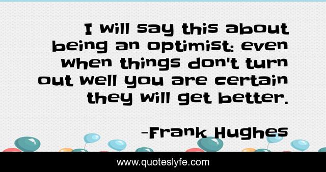 This page presents the quote "I will say this about being an optimist: even when things don't turn out well you are certain they will get better.". Author of this quote is Frank Hughes. This quote is about positive, confidence,.